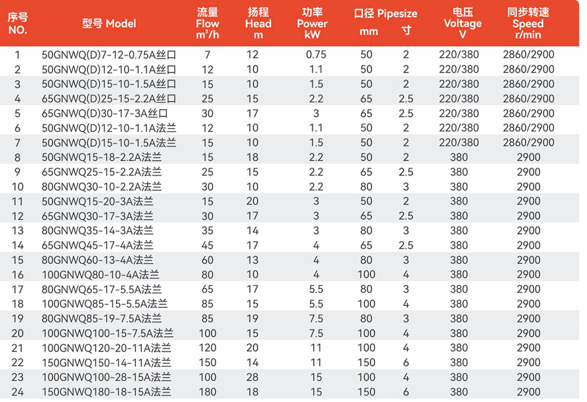 本公司生產(chǎn)的GNWQ泵系列具有革命的水力設(shè)計(jì),保證了泵在長期運(yùn)行過程中高效、可靠及無故障的工作狀態(tài)。GNWQ泵系列從兩個(gè)方面節(jié)省產(chǎn)品生命周期成本。一方面,運(yùn)行過程中大幅度降低電耗,最大降低電耗可達(dá)50%,另一方面,運(yùn)行過程中少維護(hù)或免維護(hù),這是因?yàn)椋篏NWQ泵系列是市場上最高效的潛污泵。 GNWQ泵系列能長期保持高效,即便是在含有大量顆粒和纖維的介質(zhì)中。GNWQ泵系列有著卓越的不堵塞特性,排除了堵塞的風(fēng)險(xiǎn)。